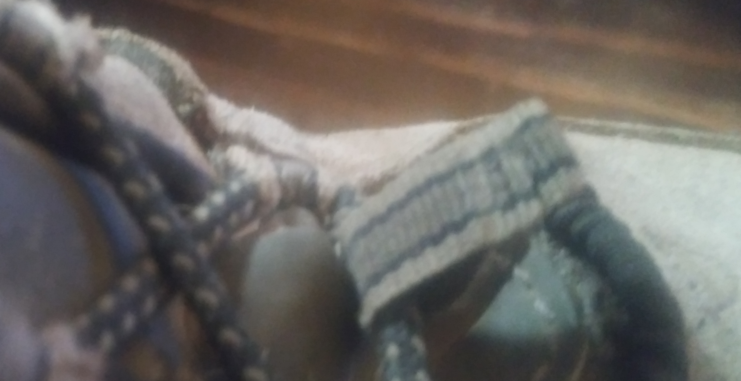 Then about three or four weeks after that one popped off, a second one wore through and the shoe lace is no longer supported. Notice in this picture: